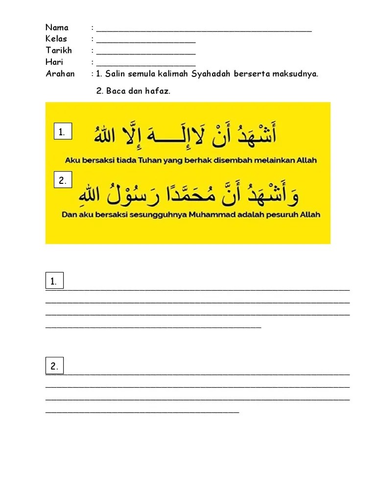 He uses two principles as his proof. How to read kalimah shahadah | the second kalimah. Solat ialah rukun islam yang kedua selepas syahadah. Mereka gunakan dua kalimah syahadah sebagai bukti mereka. Posts about kalimah & shahādah translations written by abuaisha. Audio (help·info)) is the first pillar of islam. What are the 6 kalimah's ? Mengucap dua kalimah syahadah (b.a.i). 2) wa ash hadu anna muhammada rrosulullah. Believers!, o ye who believe!, o you who believe!, . Contextual translation of dua kalimah syahadah into english. Umat islam melafazkan dua kalimah syahadah tidak kurang dari 9 kali setiap hari iaitu dalam bacaan tahiyat awal dan tahiyat akhir sembahyang . The saying is lā ʾilāha ʾillā allah, muḥammadun rasūl allah, meaning there is no deity but god, muhammad is .